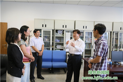 在生物学院,校长宋维明走进了生物学院的每一个教研室、办公室,与正在工作的每一位教师亲切握手,祝他们教师节快乐,感谢他们一直以来对学校各项事业发展做出的贡献。宋校长与部分教师交流了科研成果,并对他们学科的发展提出了建议,希望教师们继续发扬学院的优良传统在各自的岗位上取得更好的成绩。