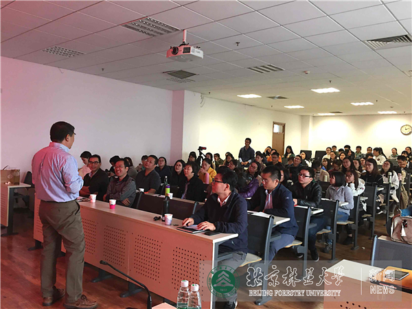 张冬林教授以“中国,世界园林之母”为切入点,重点介绍了美国与中国园林植物品种的相似性、美国植物种质资源来源、植物杂交育种、自然选种、现代生物技术在育种工作中的应用。着重强调了美国在育种工作中的新思想、新方法、新技术,并结合自己在教学研究工作中的心得和体会,来启迪在座师生。张教授指出,作为育种工作者,一定要经常留心、关注自然界的植物,时常上山走走,培养自己“植物猎人”的素质,发现宝贵的变异种质资源并保存下来,进而开展优良植物的选育,并以美国多种观赏植物育种的成功案例,启发大家如何培育具有国际先进性、市场流行的花卉植物新品种。报告结束后,师生们积极提问,张教授一一作答,并寄语学生要珍惜校园时光,刻苦学习,多出去走走,不断提升自己。