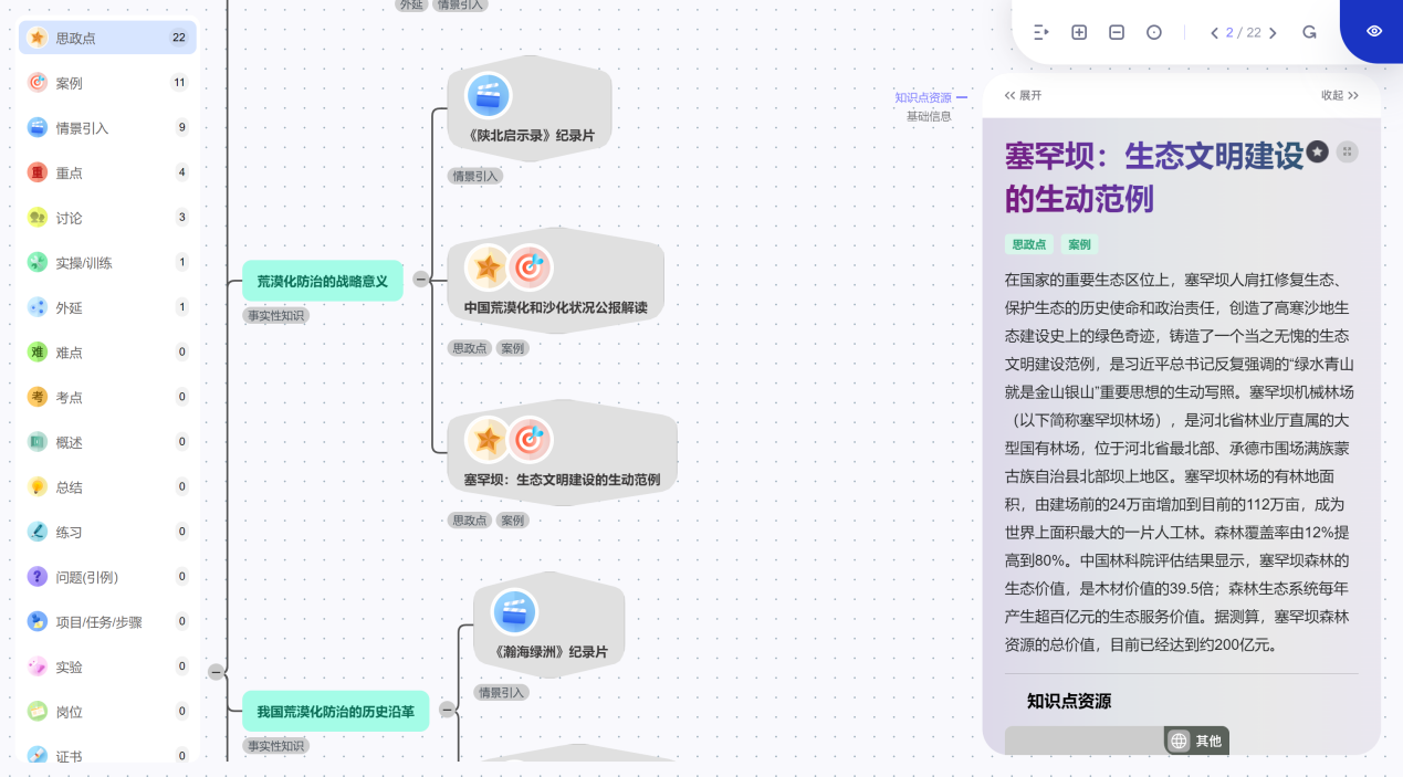 在推动智能技术与教育教学深度融合和创新应用的探索中,课程教学团队坚持以学生发展为核心不动摇,以课程挑战和痛点问题为导向,以思政为魂、内容为要、共享为途,通过专思同行、知行合一、数字赋能,不断探索利用人工智能技术的专业课教学创新手段,建设了“荒漠化防治学”AI新形态课程,引领服务爱沙知沙拔尖创新型领军人才培养。