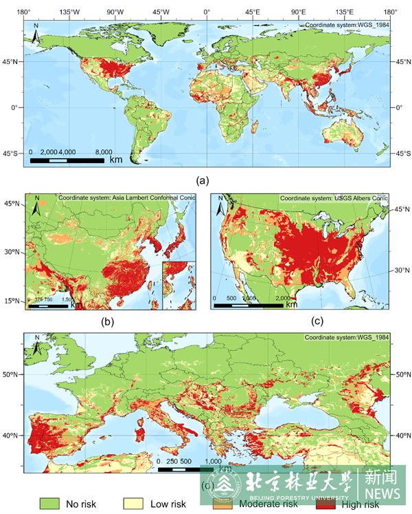 图3 当前气候条件下的全球松材线虫病风险区