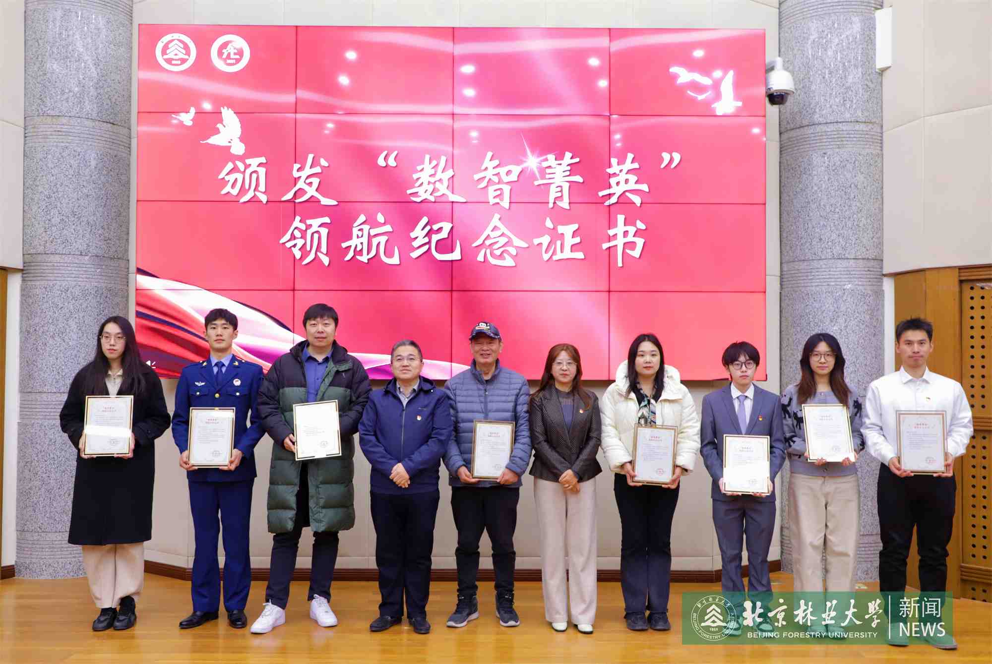 学院党委书记、院长为与会分享嘉宾颁发“数智菁英”领航纪念证书,与会领导和嘉宾为获奖学生代表颁奖。