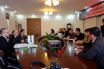 我校党委书记吴斌教授对来访一行表示热烈欢迎,并介绍了我校学院设置和学科优势等情况。中岛勇喜理事一再表示非常荣幸与我校建立合作关系,能与水土保持学院、理学院、信息学院开展具体交流。吴斌教授、中岛勇喜均是从事水土保持方面研究的专家,他们还就海岸防护林、防沙、海啸等专业问题进行了交流。