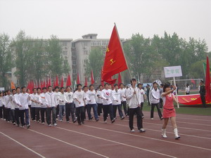 11日,我校2009年春季学生田径运动会开幕,学校领导以及全体裁判员、教练员、运动员参加了开幕式。本届运动会除常规田赛、径赛外,还增添了七个项目的特色趣味竞赛,每个学院组队参加,运动会赛期为一天。