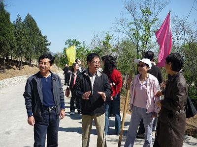 校党委书记吴斌在向教育部干部们介绍林场概况时说,1952年起,鹫峰为我校第一校址,山上现有植物600余种,首都许多高校都把鹫峰作为学生实习基地,自己学生时代也常来山上背书,吴斌书记还感谢教育部对植树造绿活动的支持。