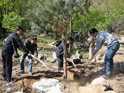 据了解,从2004年开始,教育部每年都组织人员前往我校林场植树造林,至今已经有5个年头。我校国际交流合作处与林场为此次义务植树活动做了积极地准备和协调工作。另悉,经过多年的绿化,我校鹫峰国家森林公园已经成为首都市民喜爱的著名风景区,随着天气渐暖,4月的鹫峰山上春意融融,许多游客前来登山赏花。(A11)