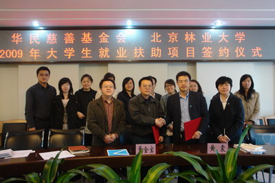日前,“华民慈善基金会 北京林业大学 2009年大学生就业扶助项目签约仪式”在我校举行,华民慈善基金会将继续与我校合作开展第二期大学生就业扶助项目,届时基金会将资助我校2010届100名本科生就业。同日,华民慈善基金会副秘书长黄震教授为我校学生做了一场主题为“资本精神与现代慈善事业”的报告。学校招生就业处、各学院专职就业工作人员参加签约仪式和报告会。