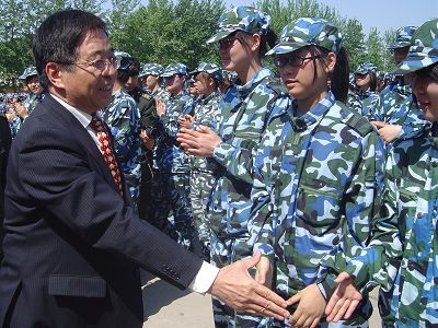 4月26日上午,我校2008级学生军训汇报表演在大兴高校军训基地举行,3237名2008级学生经过为期九天的正规军事训练,于今天接受学校检阅。我校党委书记吴斌、副校长姜恩来、副校长宋维明,军训团团长黄辉及学校部分职能部门及各学院的负责人观看了汇报演出。