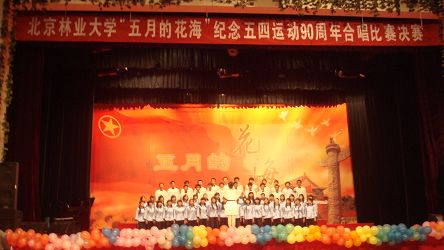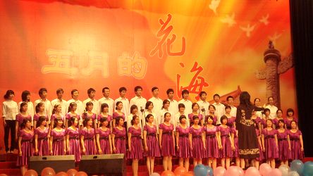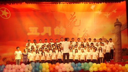 5月16日晚七点,在民乐团激越昂扬的鼓点声中,我校“五月的花海”纪念五四运动90周年合唱比赛决赛在田家炳体育馆举行。