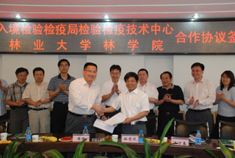 19日,我校林学院与北京出入境检验检疫局检验检疫技术中心在我校举行科技合作协议签字仪式。北京出入境检验检疫局副局长杨金良、学校副校长姜恩来,林学院、学校科技处、研究生院主要负责人、森林保护学科教师以及北京出入境检验检疫局检验检疫技术中心的各位领导参加了会议,会议由林学院党委书记张勇主持。