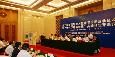 今天上午,第二届“中国环境与健康宣传周”活动在人民大会堂拉开了帷幕。宣传周的主题为“大气环境与健康”。全国人大常委会副委员长、农工党中央主席桑国卫等领导出席了启动仪式并发表了热情洋溢的致辞。