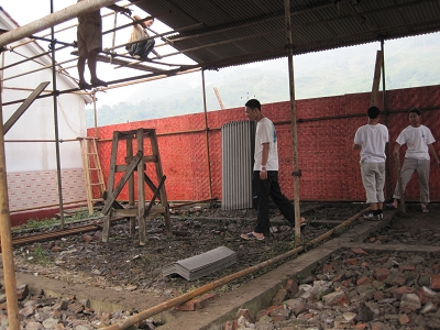据了解,翱翔社赴四川暑期实践队是在临时安置灾民的板房区开展活动,找不到合适的场地进行支教,志愿者们在当地相关组织的帮助下,自己动手,历时3天搭建了一所帐篷小学。