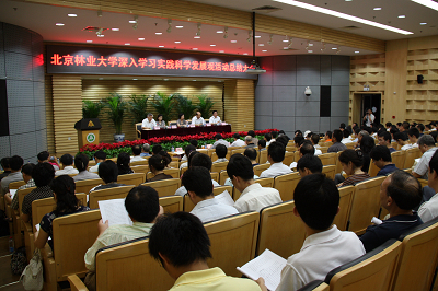 部属高校学习实践活动指导检查第三工作组组长、清华大学原党委书记贺美英在讲话中指出,北京林业大学党委对学习实践活动高度重视。全校党员干部积极参与,边学习、边实践、边整改,完成了各项学习任务,推动了学校的科学发展,取得了积极成效。通过本次学习实践活动,广大党员提高了认识,统一了思想,查找了不足,明确了方向,制定了措施,解决了一批群众反映突出的、制约学校科学发展的难题。