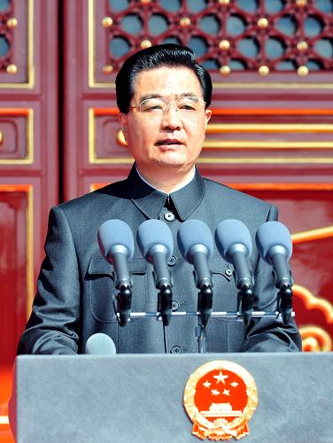 今天,我们隆重集会,庆祝中华人民共和国成立60周年。在这个喜庆而又庄严的时刻,全国各族人民都为伟大祖国的发展进步感到无比自豪,都对实现中华民族伟大复兴的光明前景充满信心。在这里,我代表党中央、全国人大、国务院、全国政协和中央军委,向一切为民族独立和人民解放、国家富强和人民幸福建立了不朽功勋的革命先辈和烈士们,表示深切的怀念!向全国各族人民和海内外爱国同胞,致以热烈的祝贺!向关心和支持中国发展的各国朋友,表示衷心的感谢!