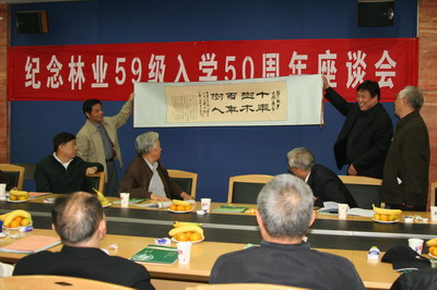 10月15日上午,图书馆三层报告厅热闹非凡,我校林业59级学生入校50周年座谈会在这里召开,以原科技部部长徐冠华、中国科学院院士唐守正等知名校友为代表的几十名校友重回母校来纪念他们入校50年。宋维明出席会议并讲话,代表学校祝愿各位校友身体康健,家庭幸福,万事如意!