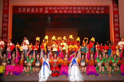 10月16日是我校57周年校庆日,在当天晚上隆重举行的北京林业大学首都国庆60周年庆祝活动总结表彰仪式暨“我和我的祖国”文艺晚会上,爱国爱校的强烈热情洋溢在会场上,充分展现出北林学子对祖国壮美河山的热爱之情,表达了北林人建设富强民主文明和谐的社会主义现代化国家而努力奋斗的坚强决心!